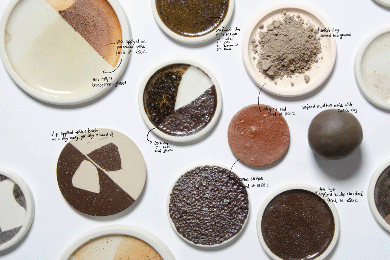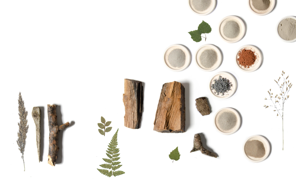 In meiner Masterarbeit untersuche ich, wie ein explorativer Designprozess mit selbst gesammelten Materialien Verbundenheit fördern kann. Ausgangspunkt der Arbeit war eine 2100km lange Recherche- und Inspirationsreise mit dem Fahrrad. Von Helsinki nach Potsdam, nutzte ich die Reise zur Erforschung des Themas. Auf dem Weg sammelte ich verschiedene Materialien, die mir später als Grundlage für den praktischen und explorativen Designprozess dienten: Ton, Sand, Ziegelsteine, Saunasteine, Holz und Pflanzen.